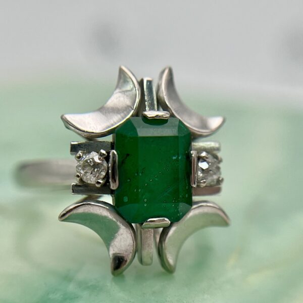 Anillo doblete verde y diamantes