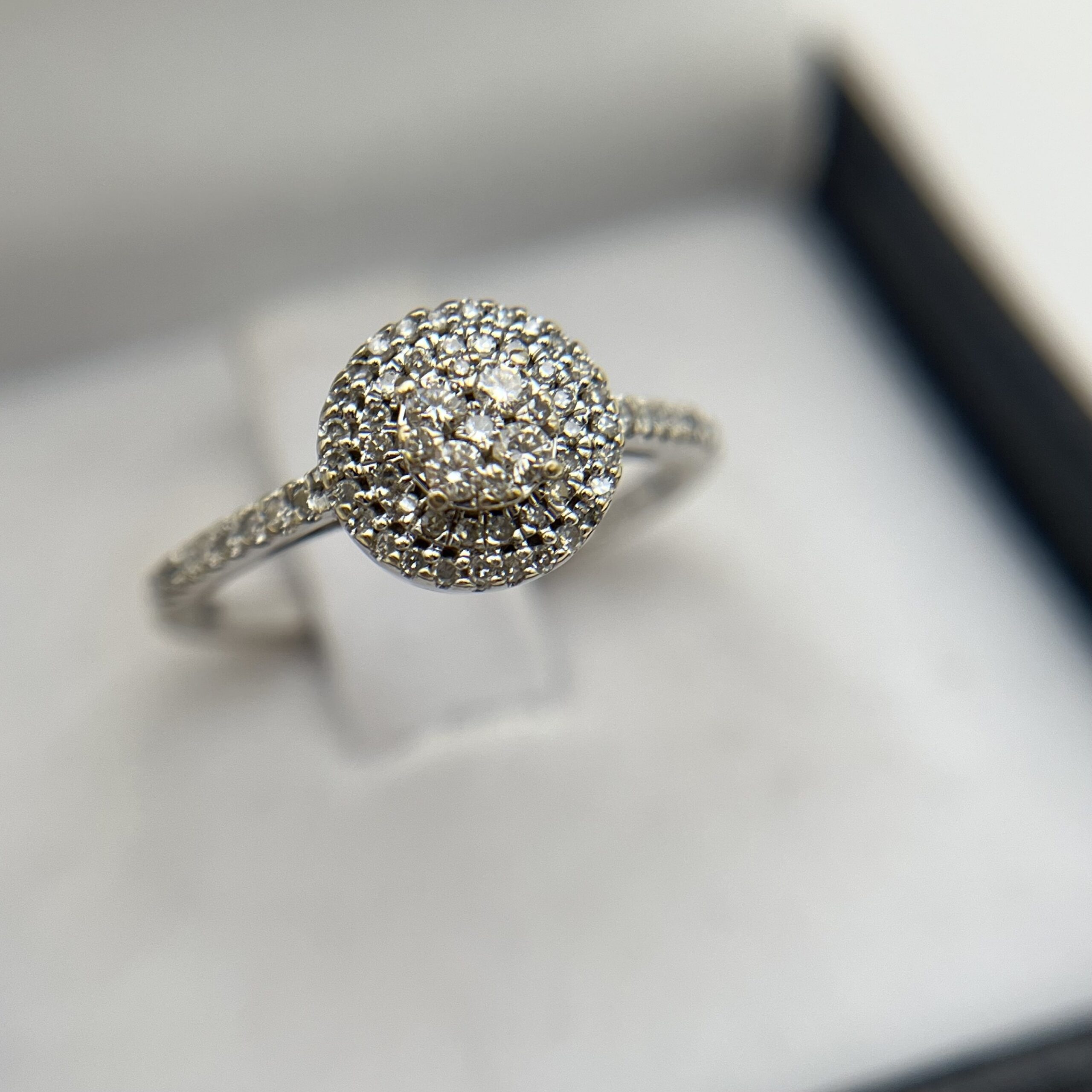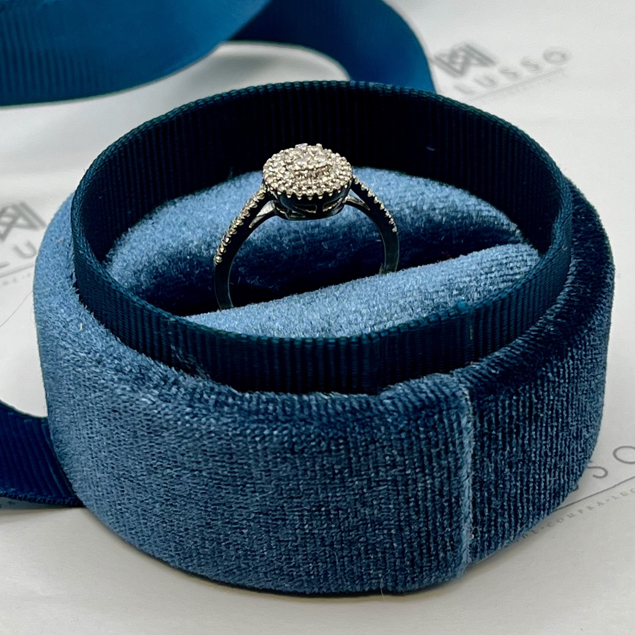 - 48 diamantes naturales que totalizan 0,19 cts. aprox., corte 8-facetas, pureza SI/Piqué, color H-J.
