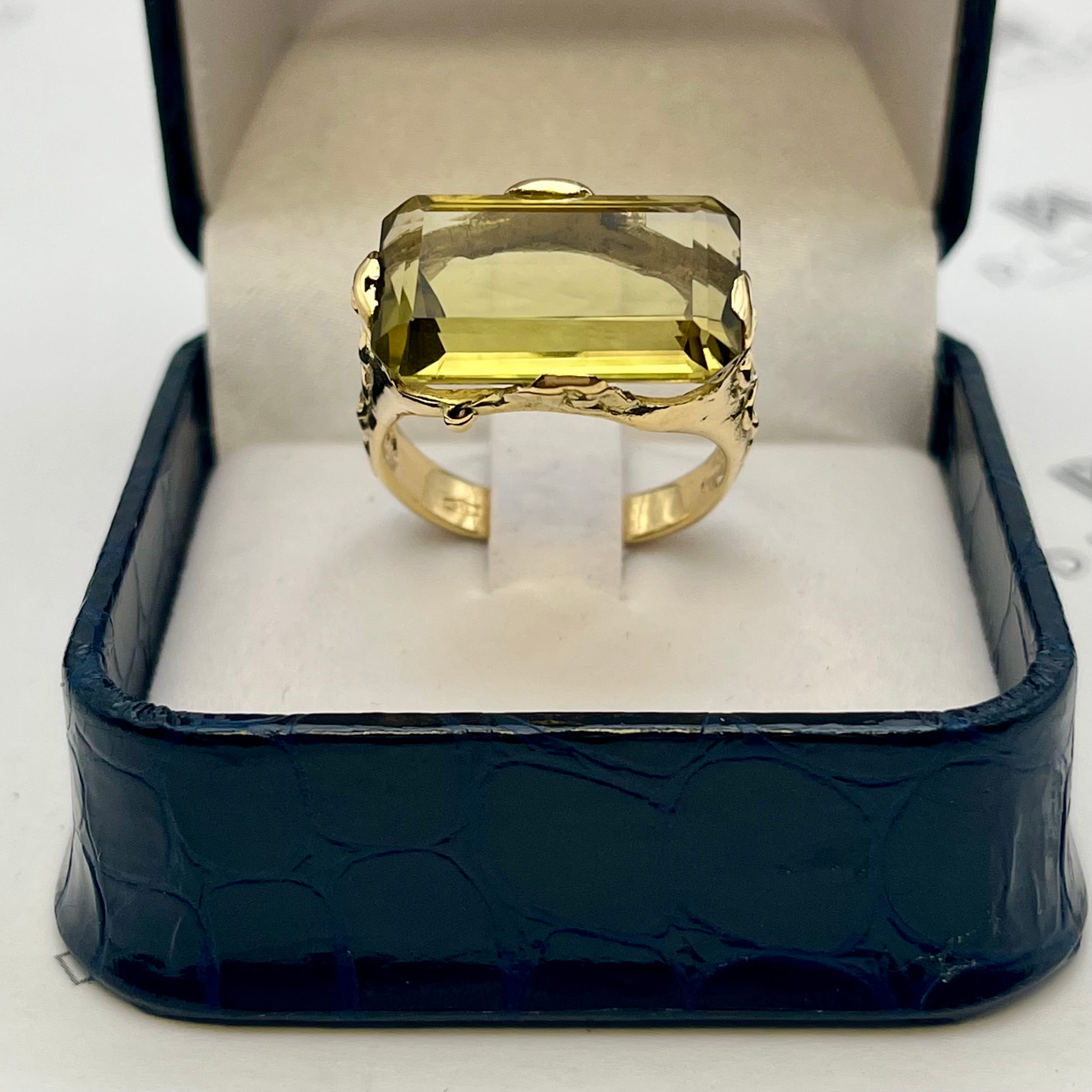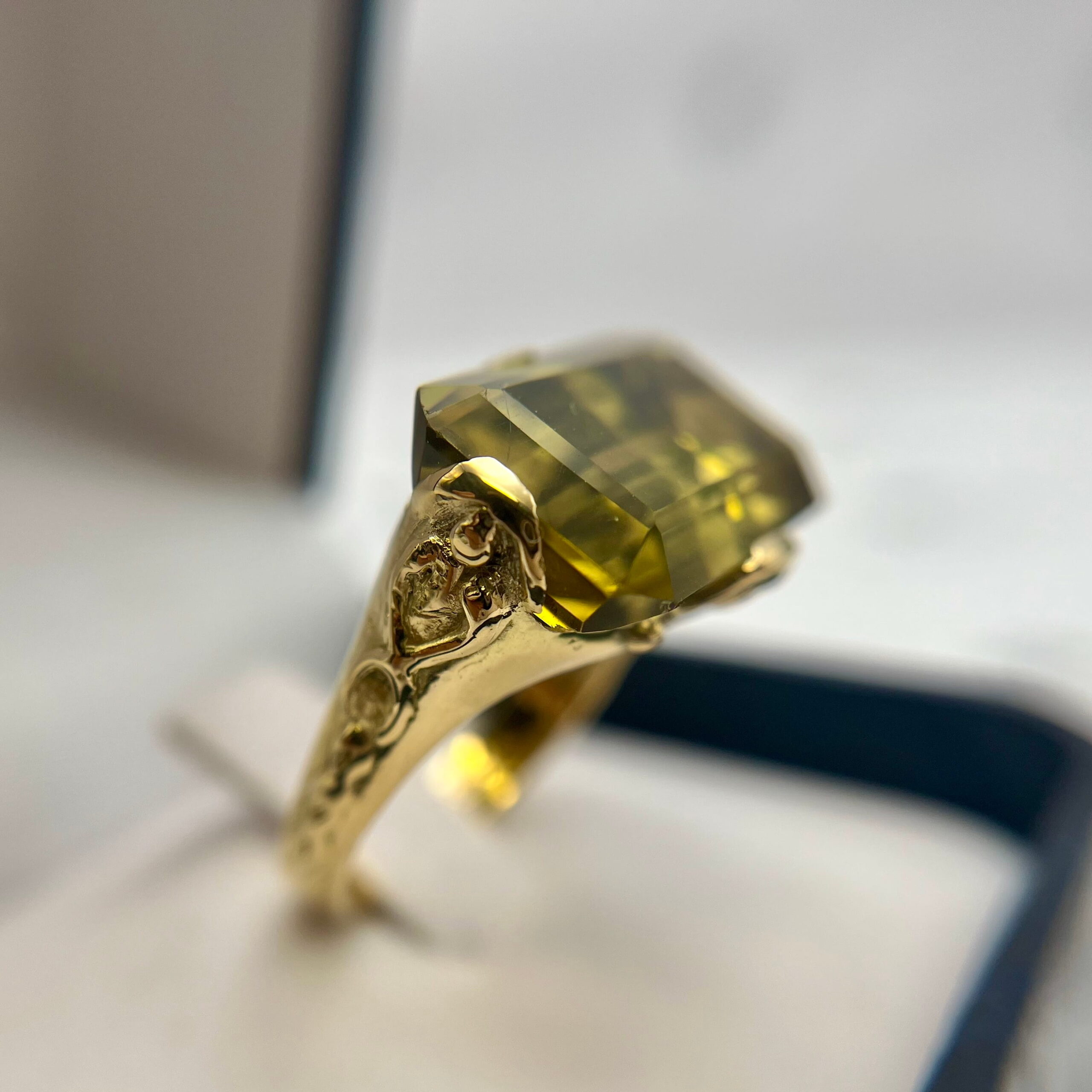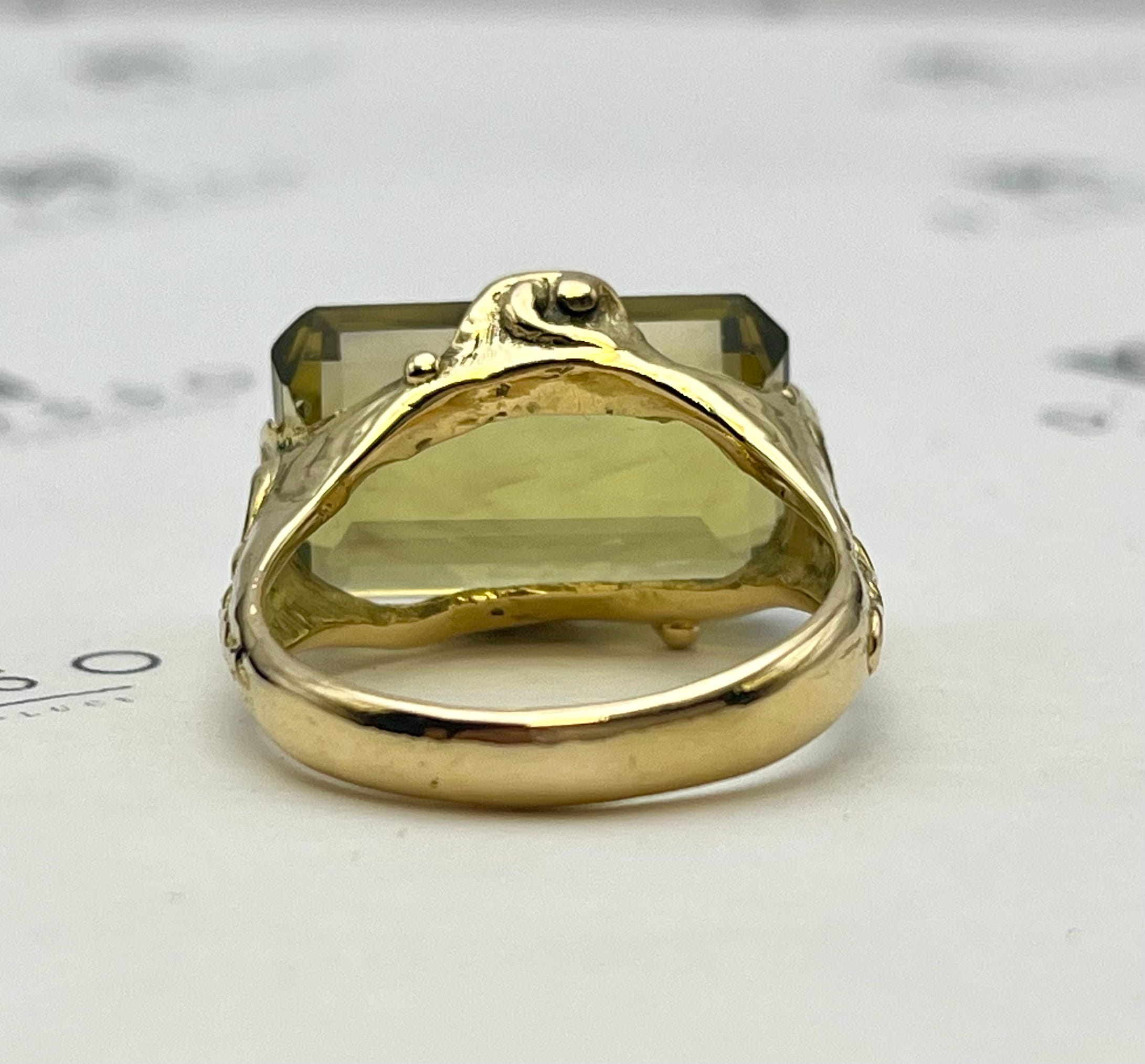 - 1 cuarzo natural, variedad Prasiolita, de 14,11 cts. aprox., corte Esmeralda – octogonal, color verde.