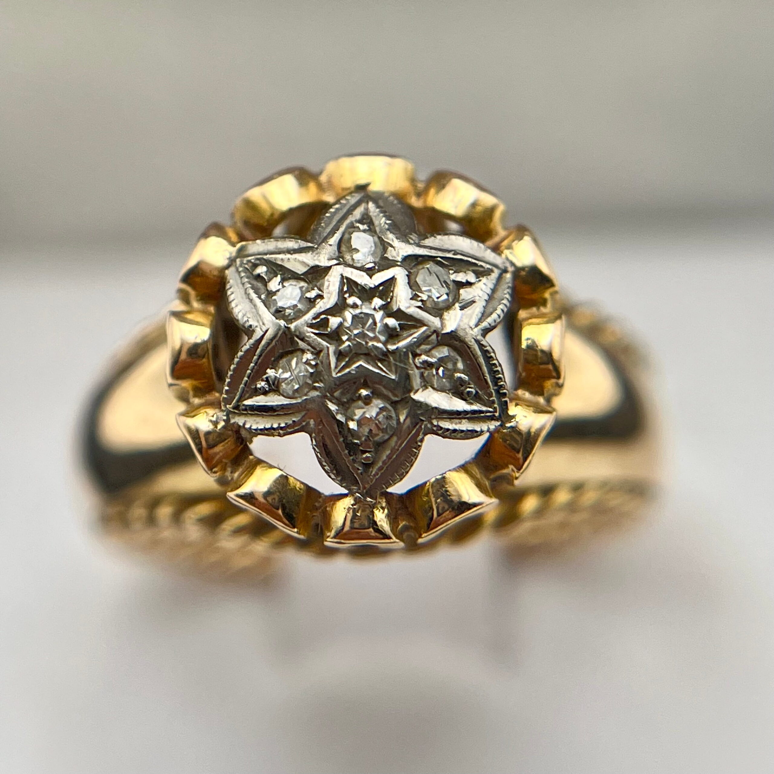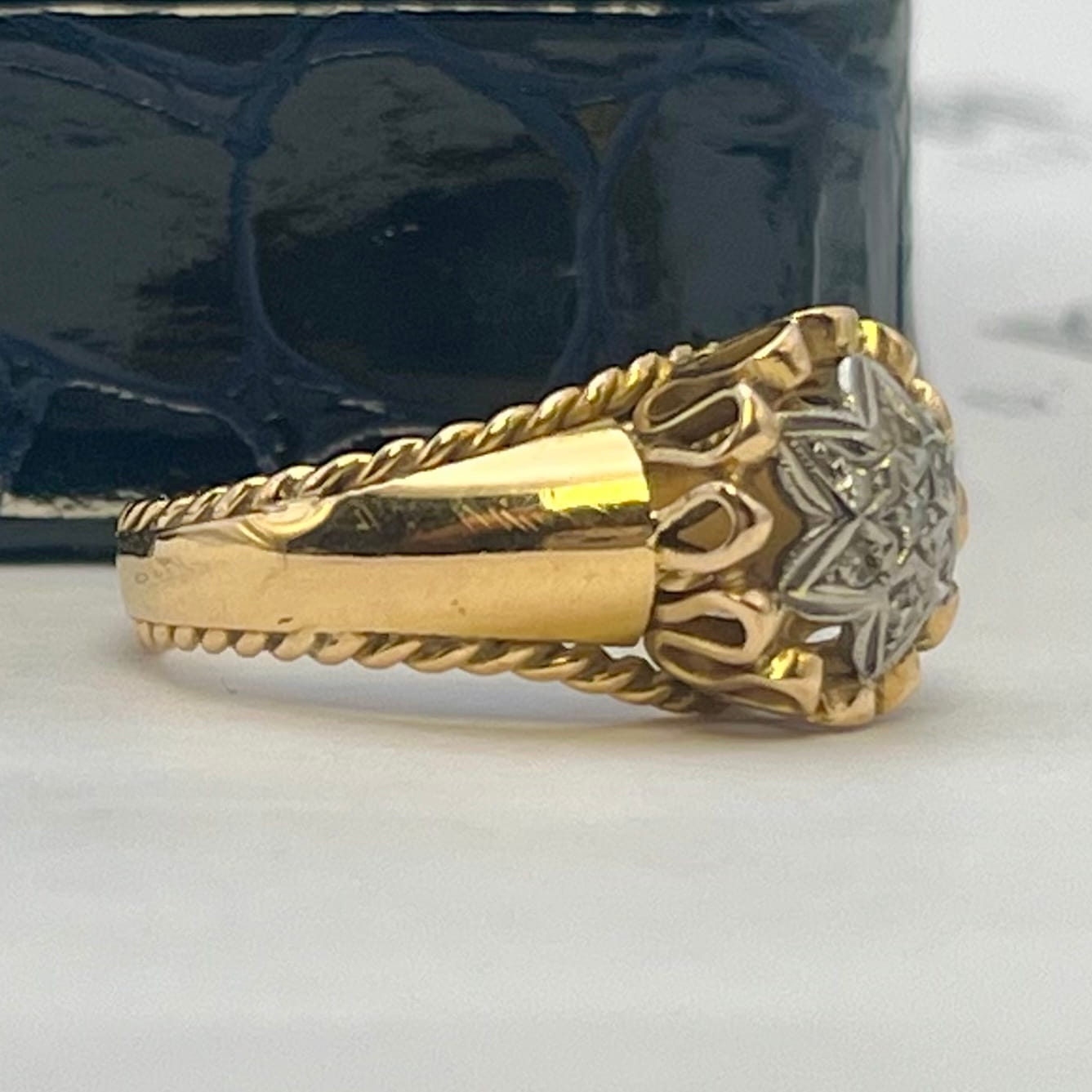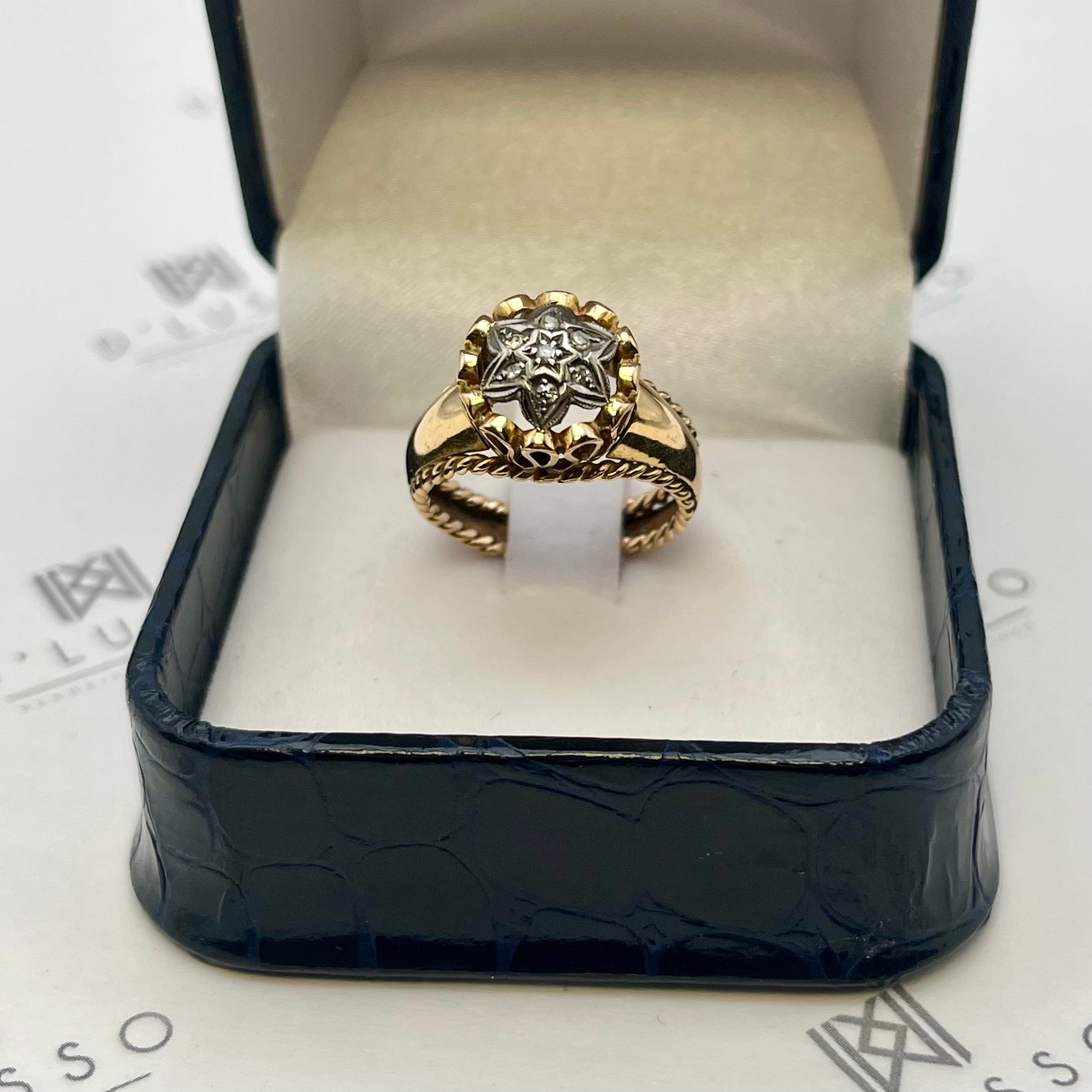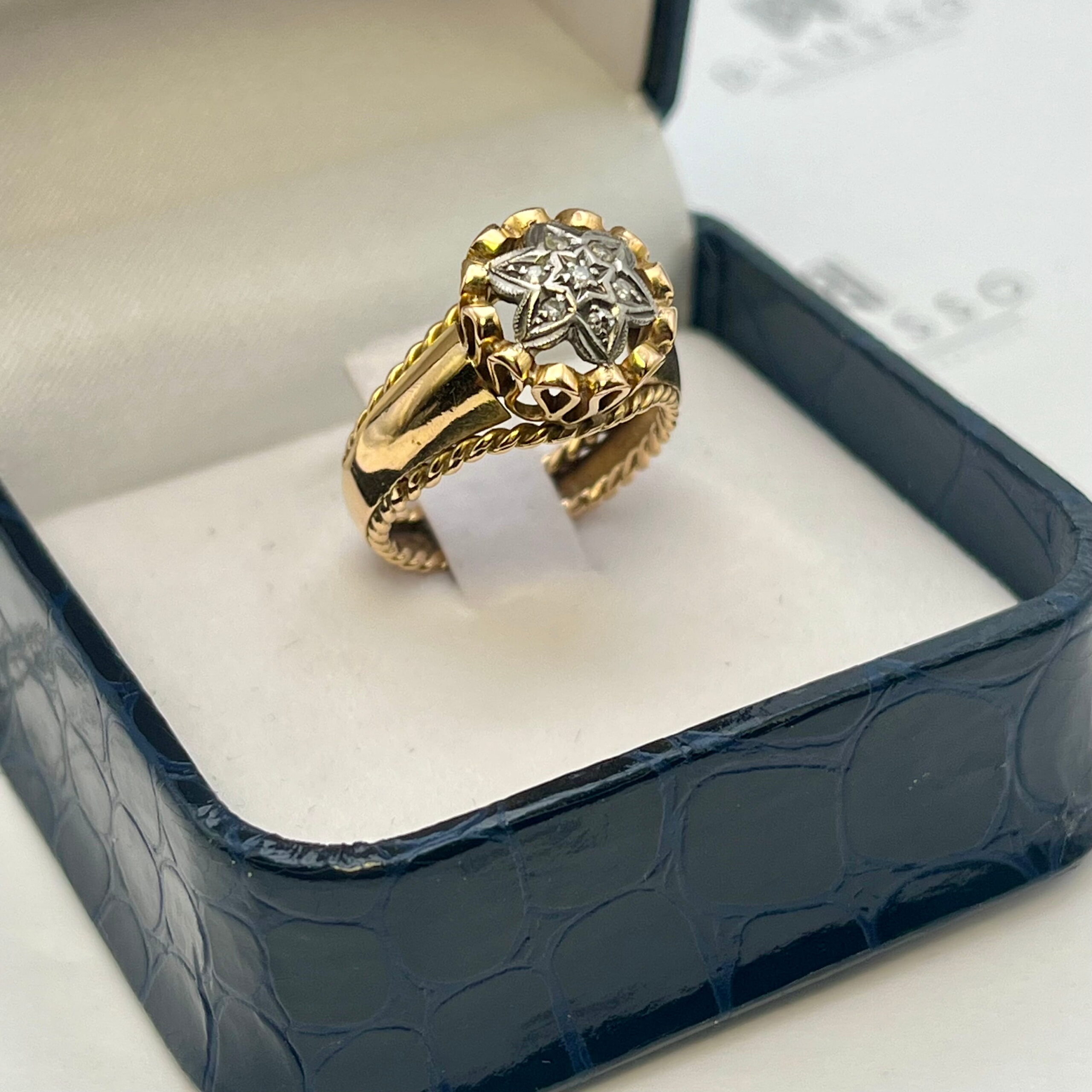 - 7 diamantes naturales que totalizan 0,035 cts. aprox., corte 8-facetas, pureza SI-Piqué, color H-I.