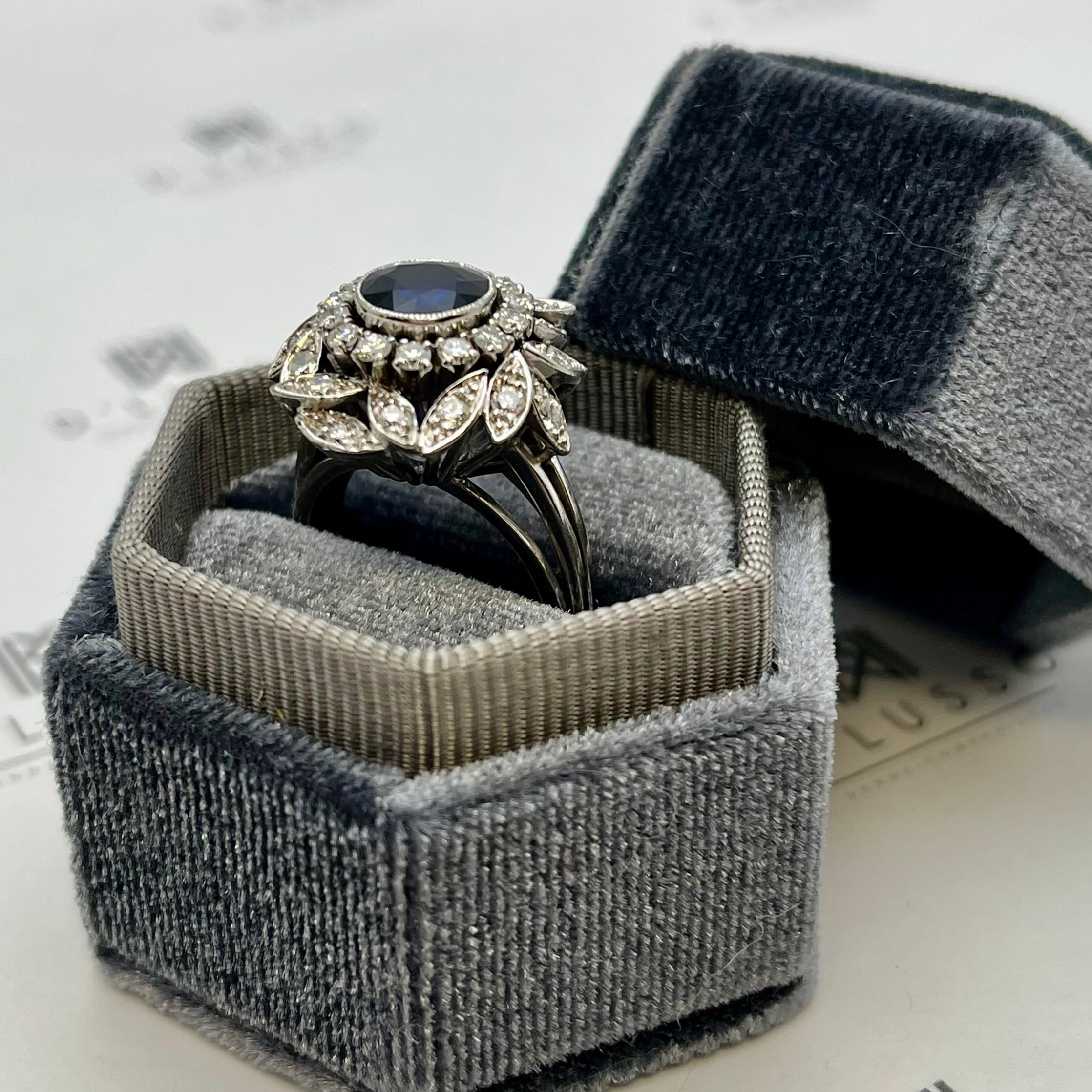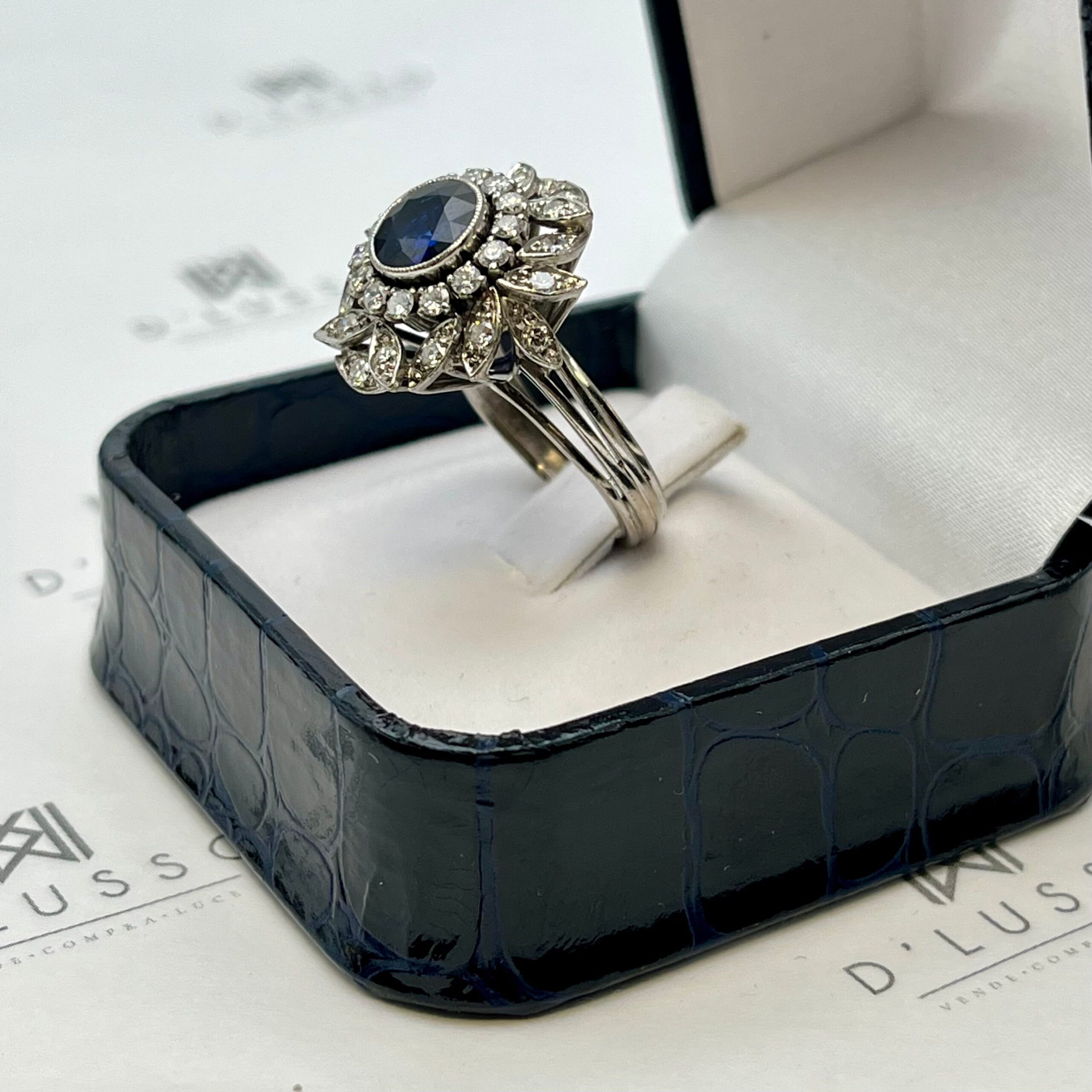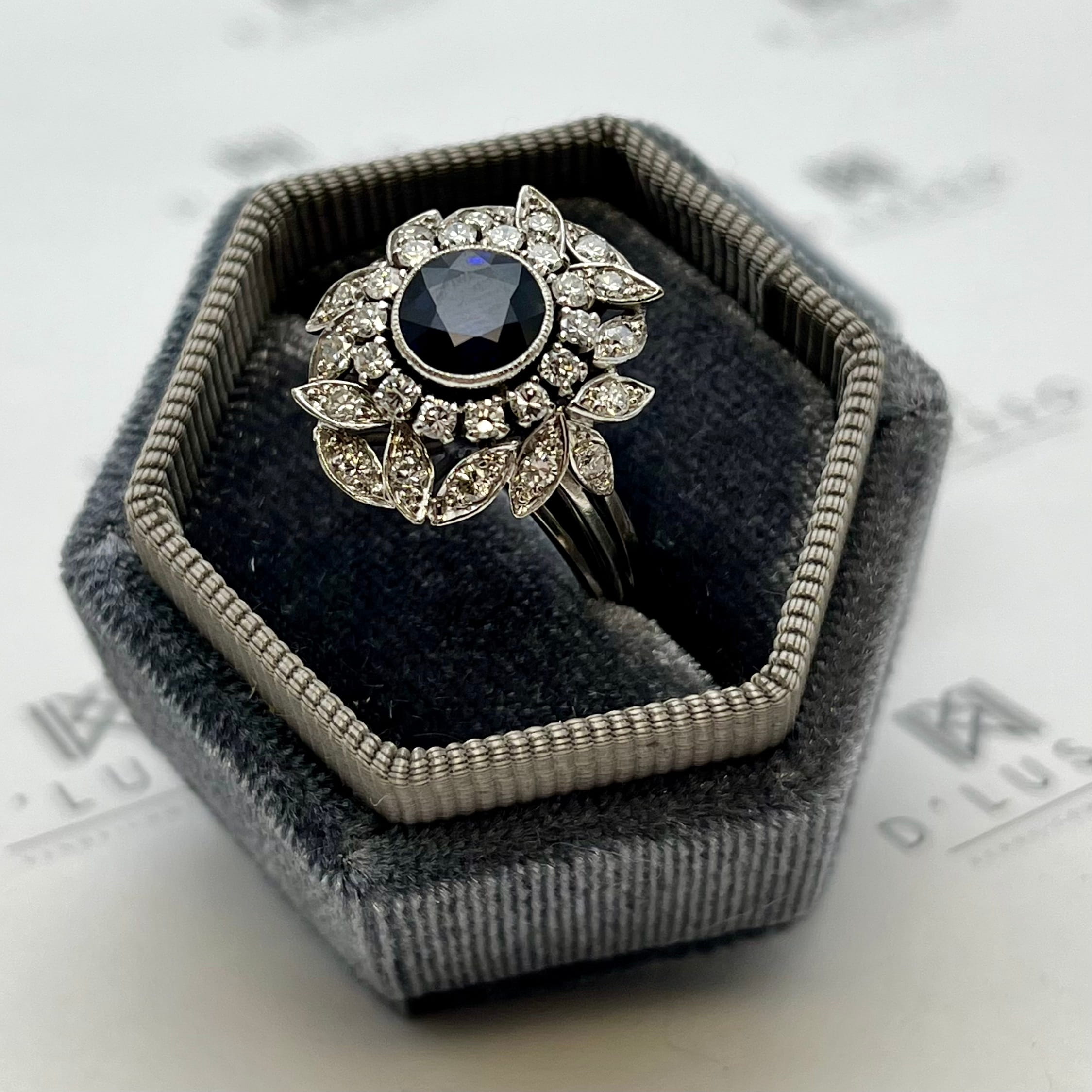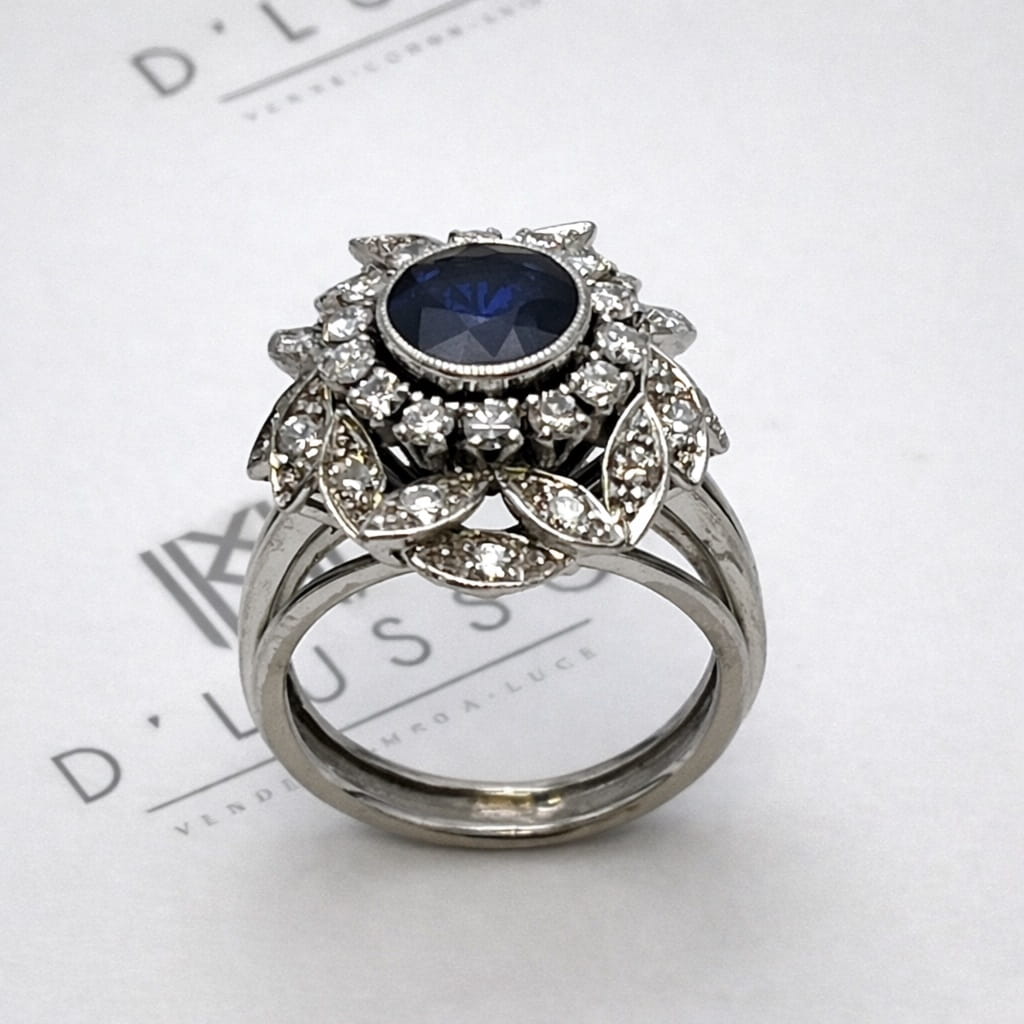 Anillo floral con zafiro