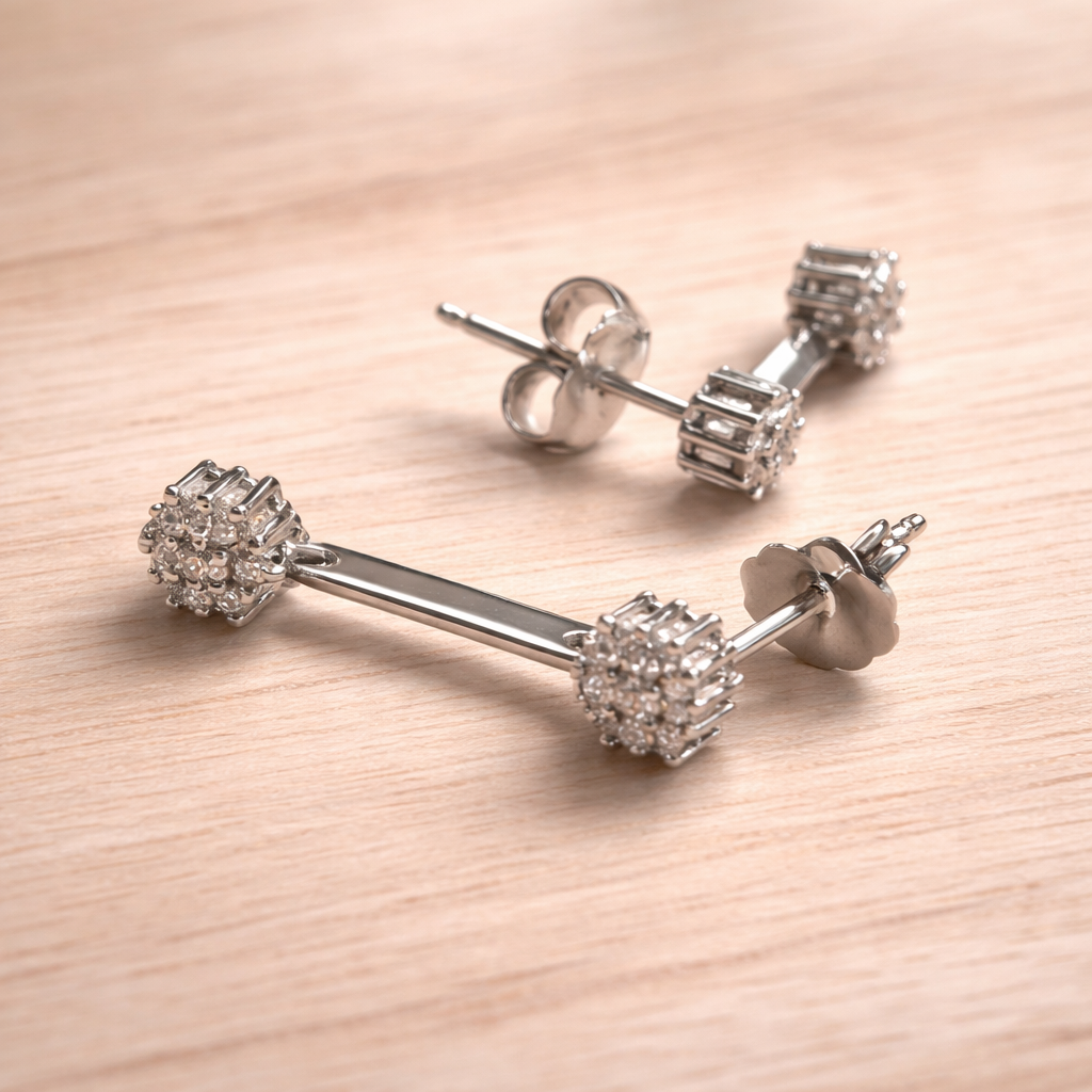 - 6 diamantes sintéticos HPHT que totalizan 0,08 cts. aprox., pureza SI, color H.