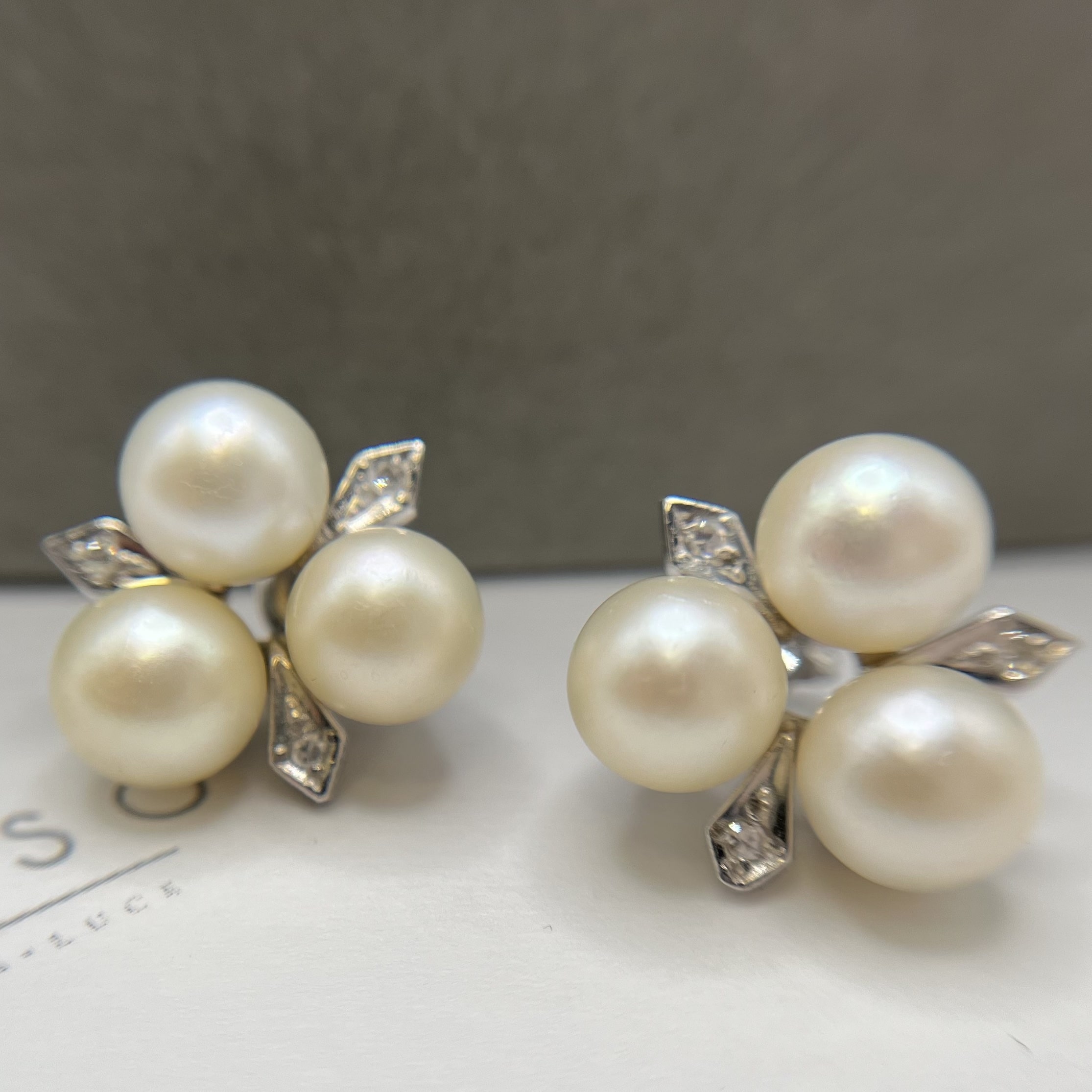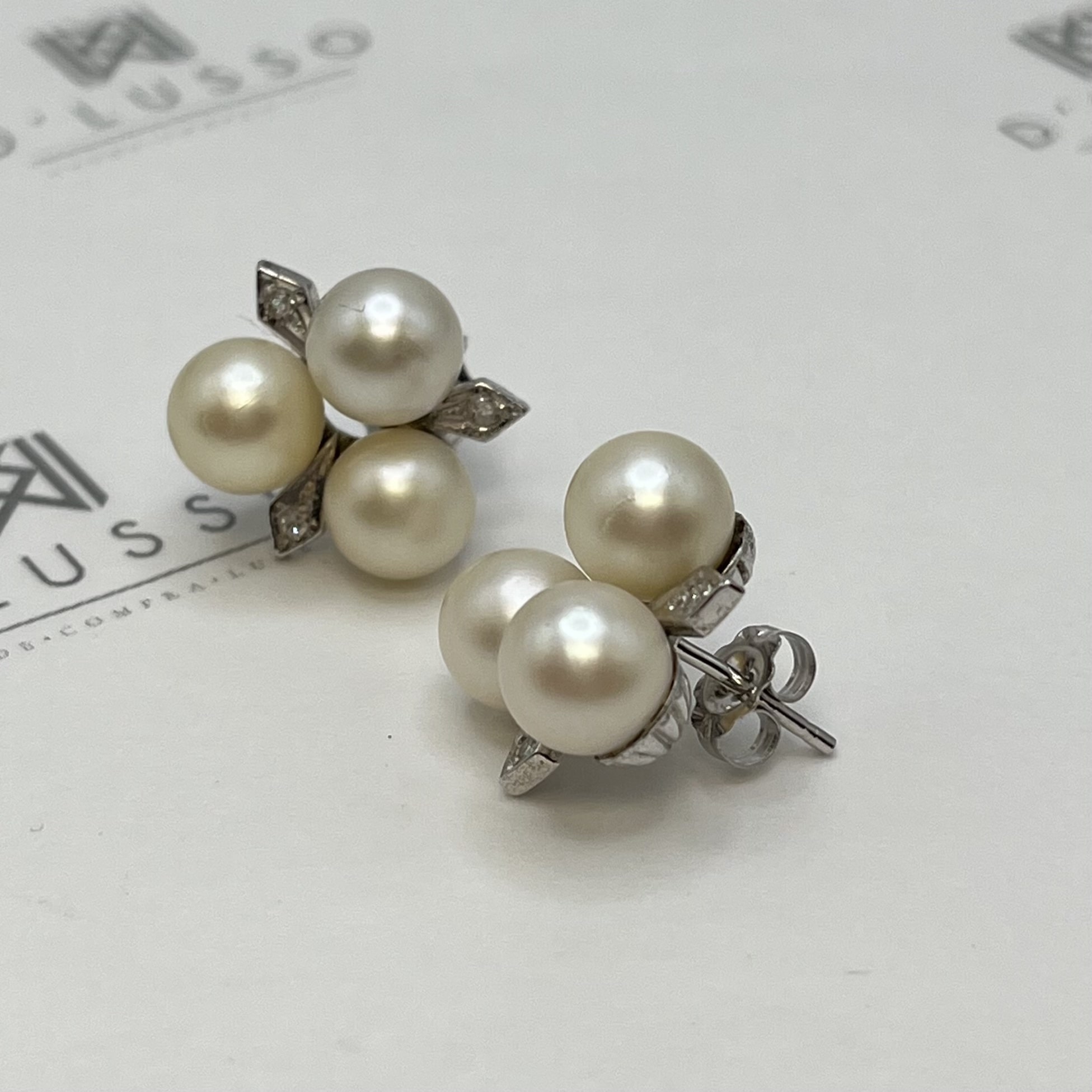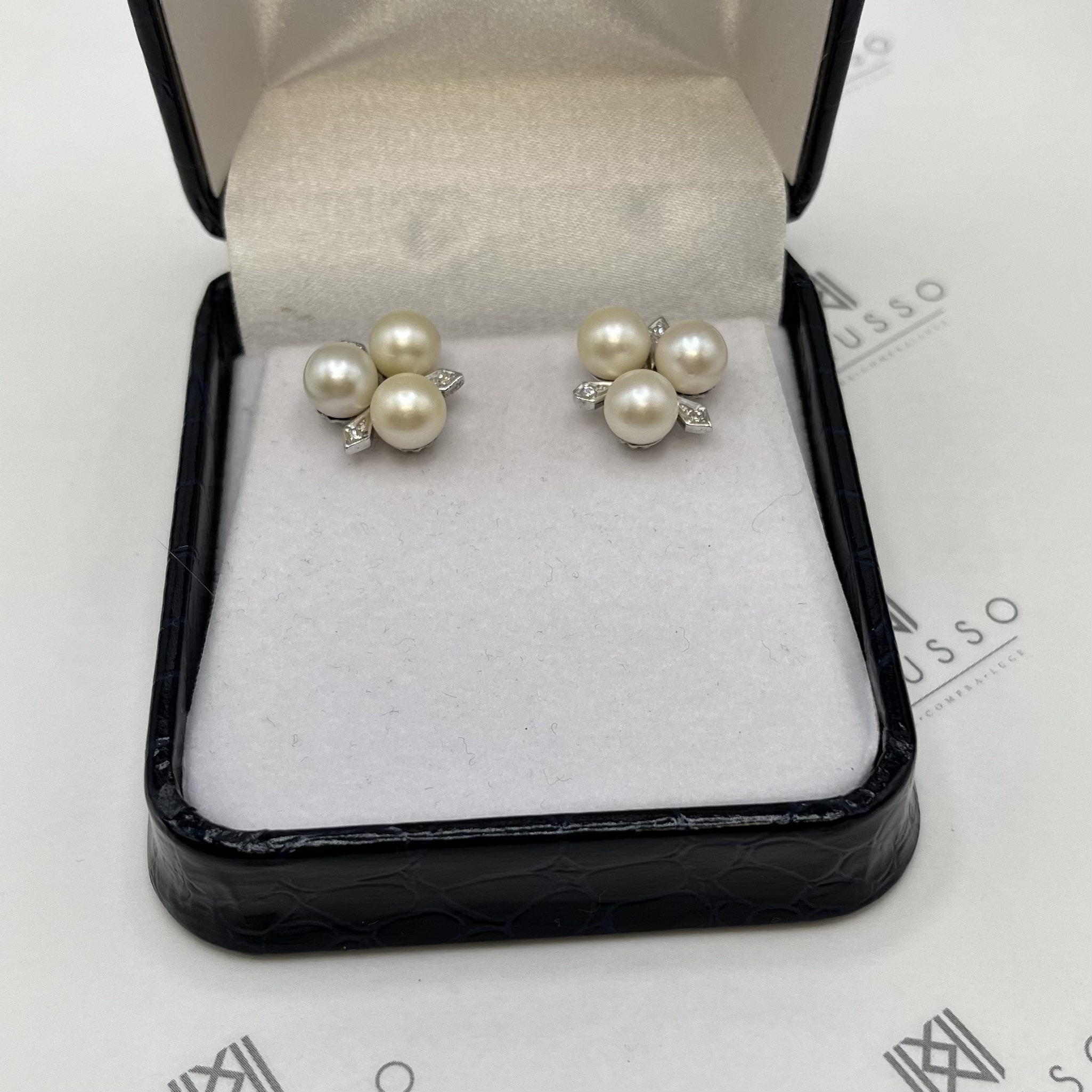 • 6 perlas cultivadas, variedad Fresh water, redondas, de 7-7,5 mm, blancas sobre tono verdoso.