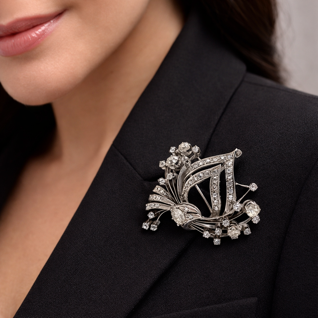 - 24 diamantes naturales que totalizan 0,72 cts. aprox., corte Brillante antiguo, pureza SI/Pique, color H.
