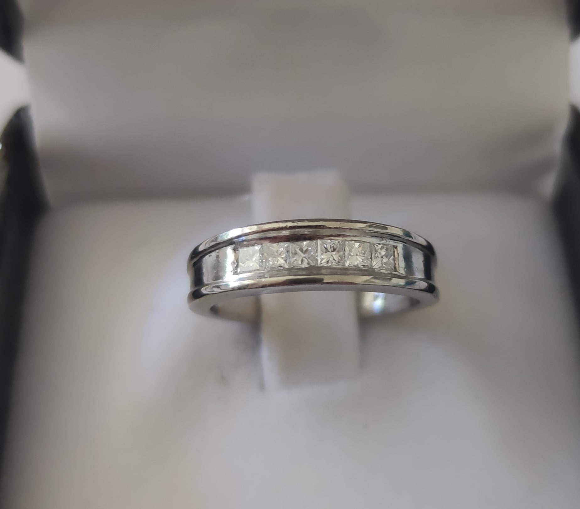 - 6 diamantes naturales que totalizan 0,36 cts. aprox., corte Princess cuadrado, pureza VS, color H.