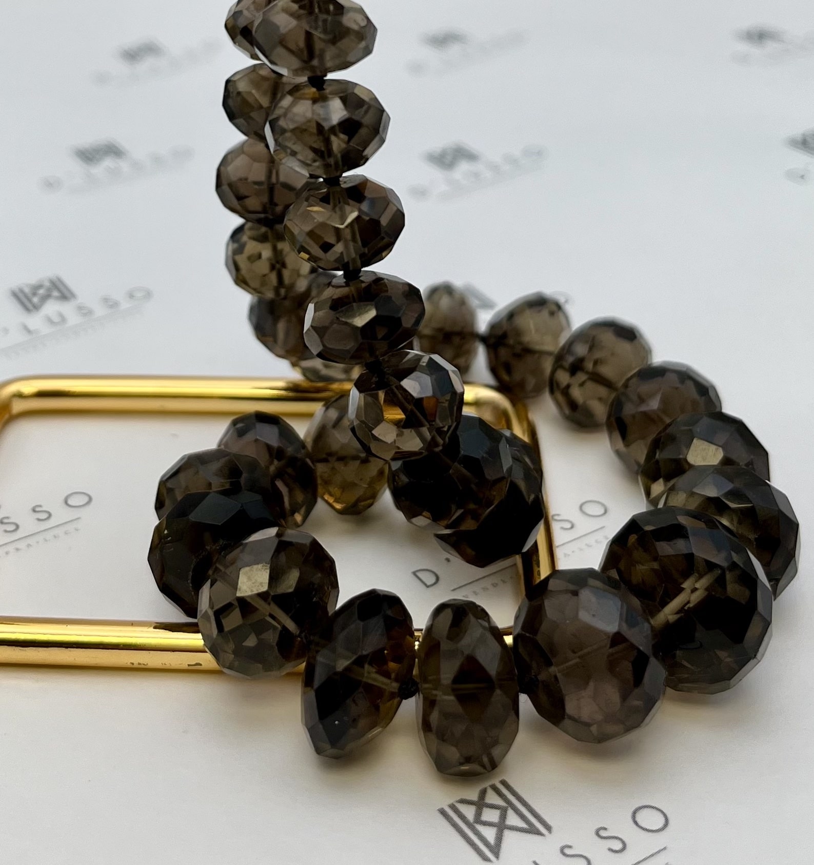 - 44 cuarzos naturales variedad Ahumado, que totalizan 450,5 cts. aprox., corte Fantasía/ cuentas, color café.