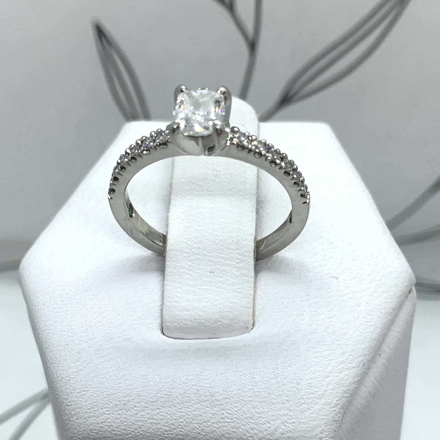 - 1 diamante natural de 0,50 cts. aprox., corte Cushion/brillante modificado, pureza VS2, color E.