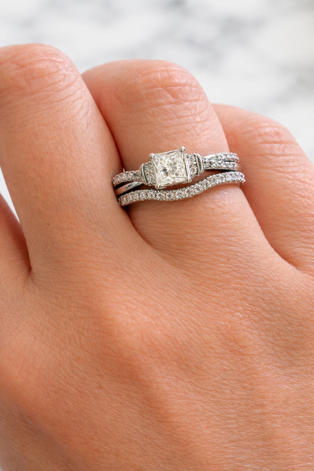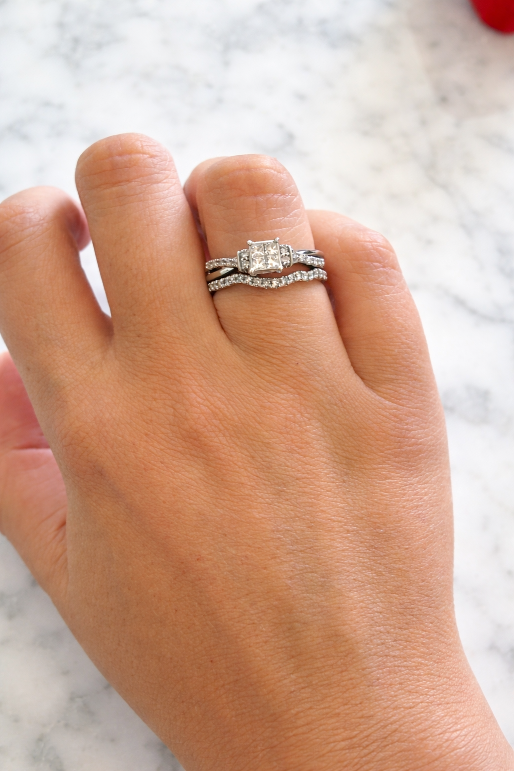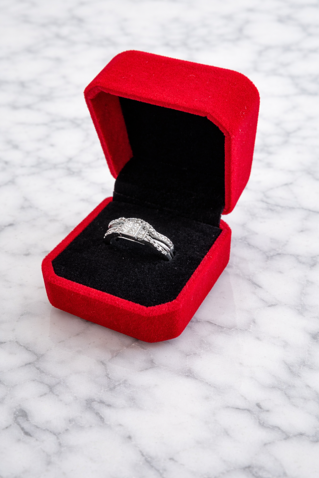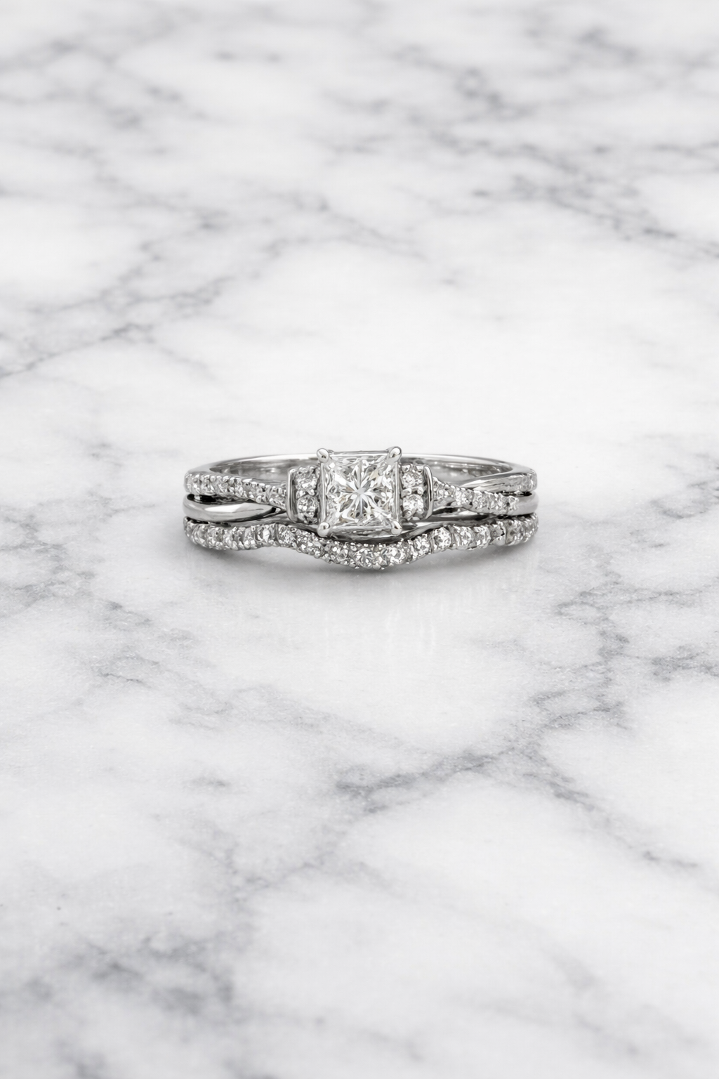 - 30 diamantes aprox., que totalizan 0,41 cts. aprox., corte Princess y Brillante, pureza I1/I2, color I/K.