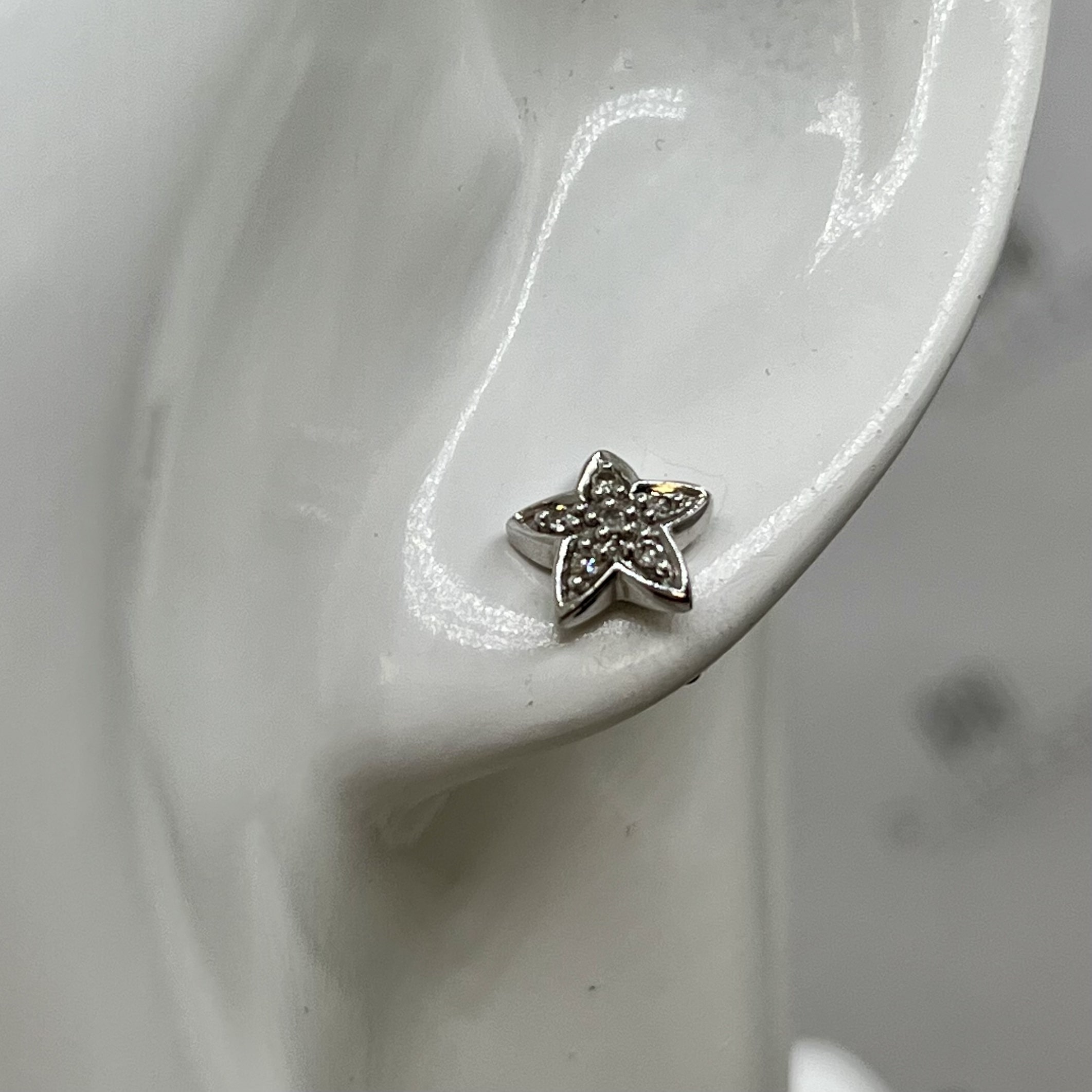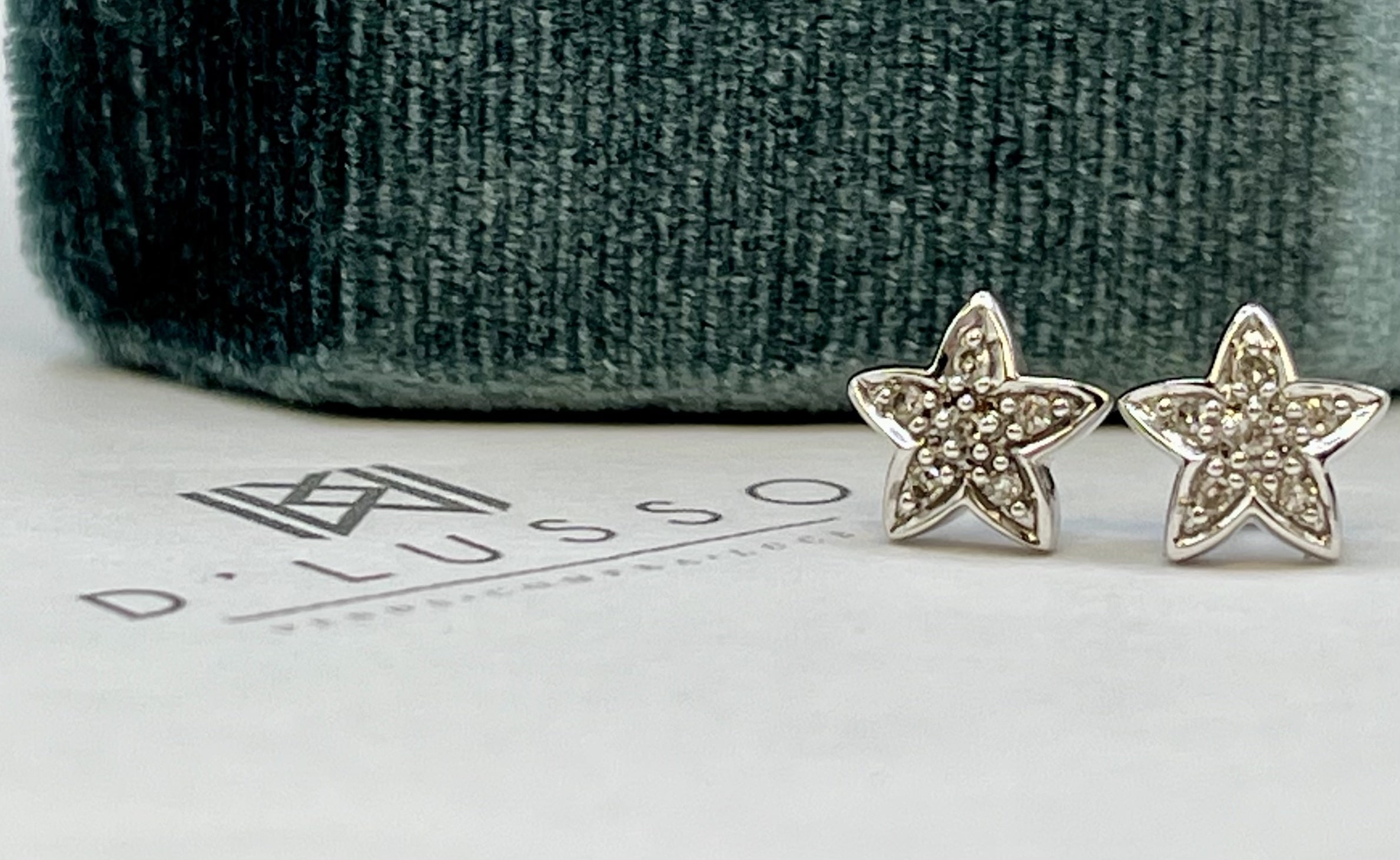 • 12 diamantes naturales que totalizan 0,06 cts. aprox., corte 8-facetas, pureza SI-Piqué, color H-I.