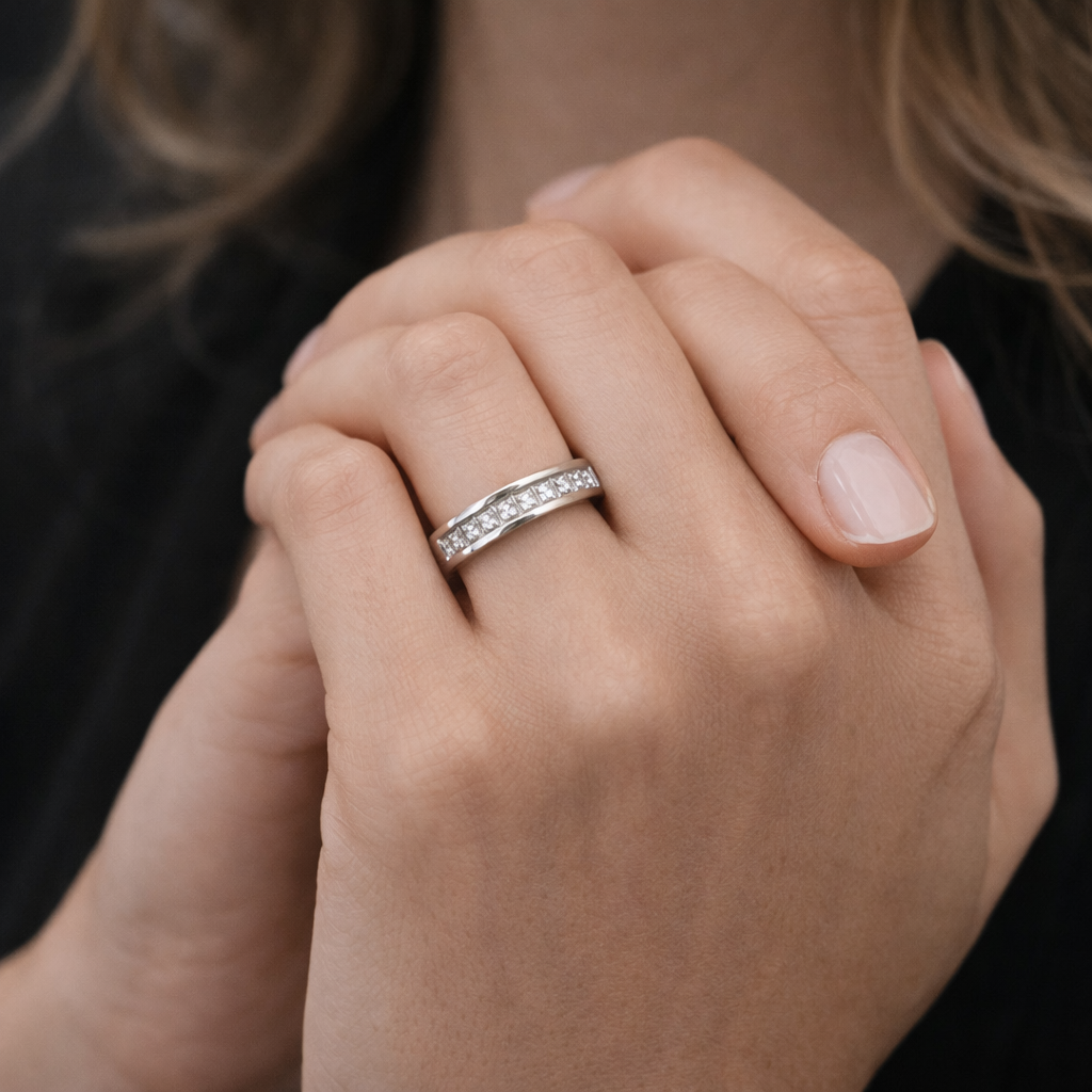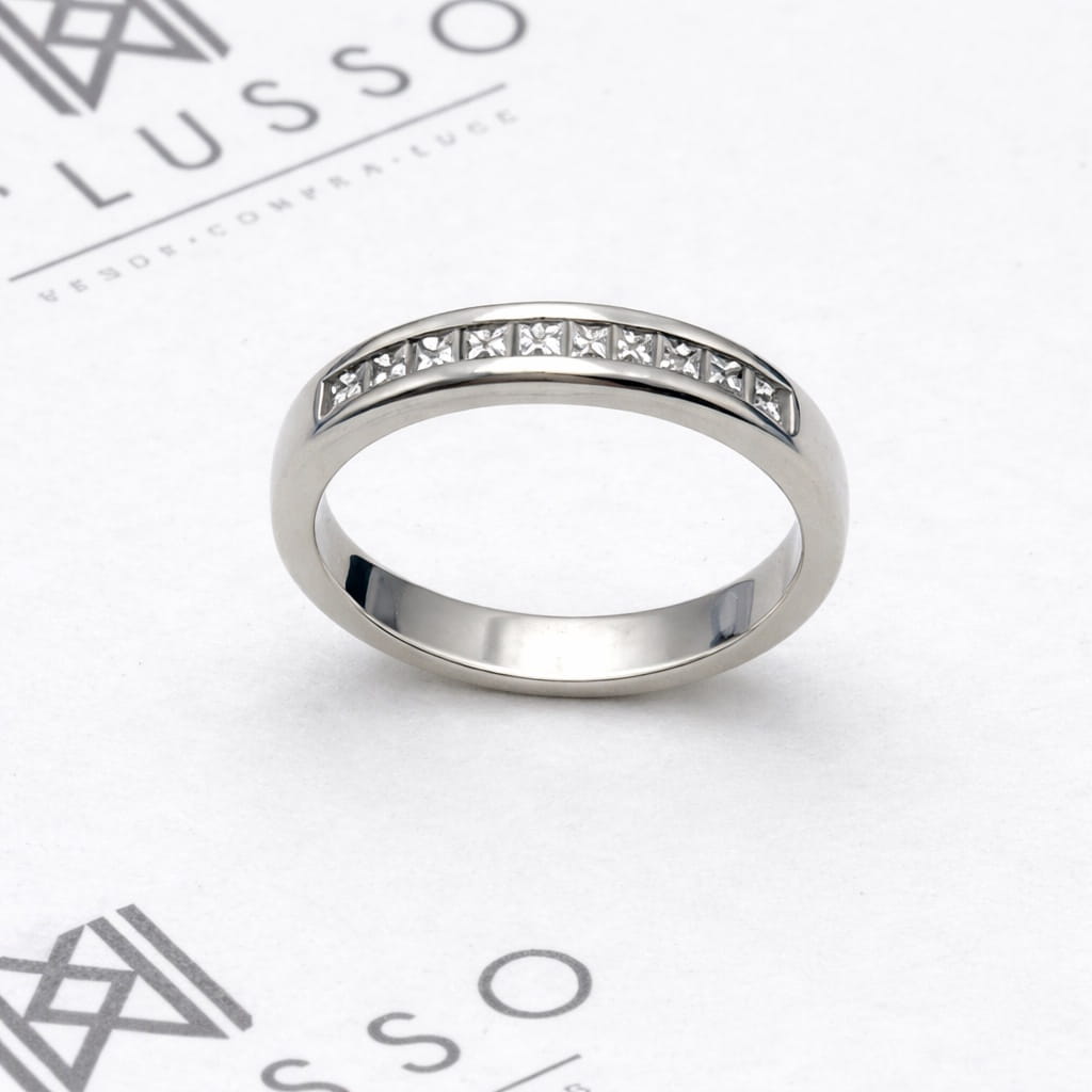 - 9 diamantes naturales que totalizan 0,45 cts. aprox., corte Princess, pureza VS, color H.