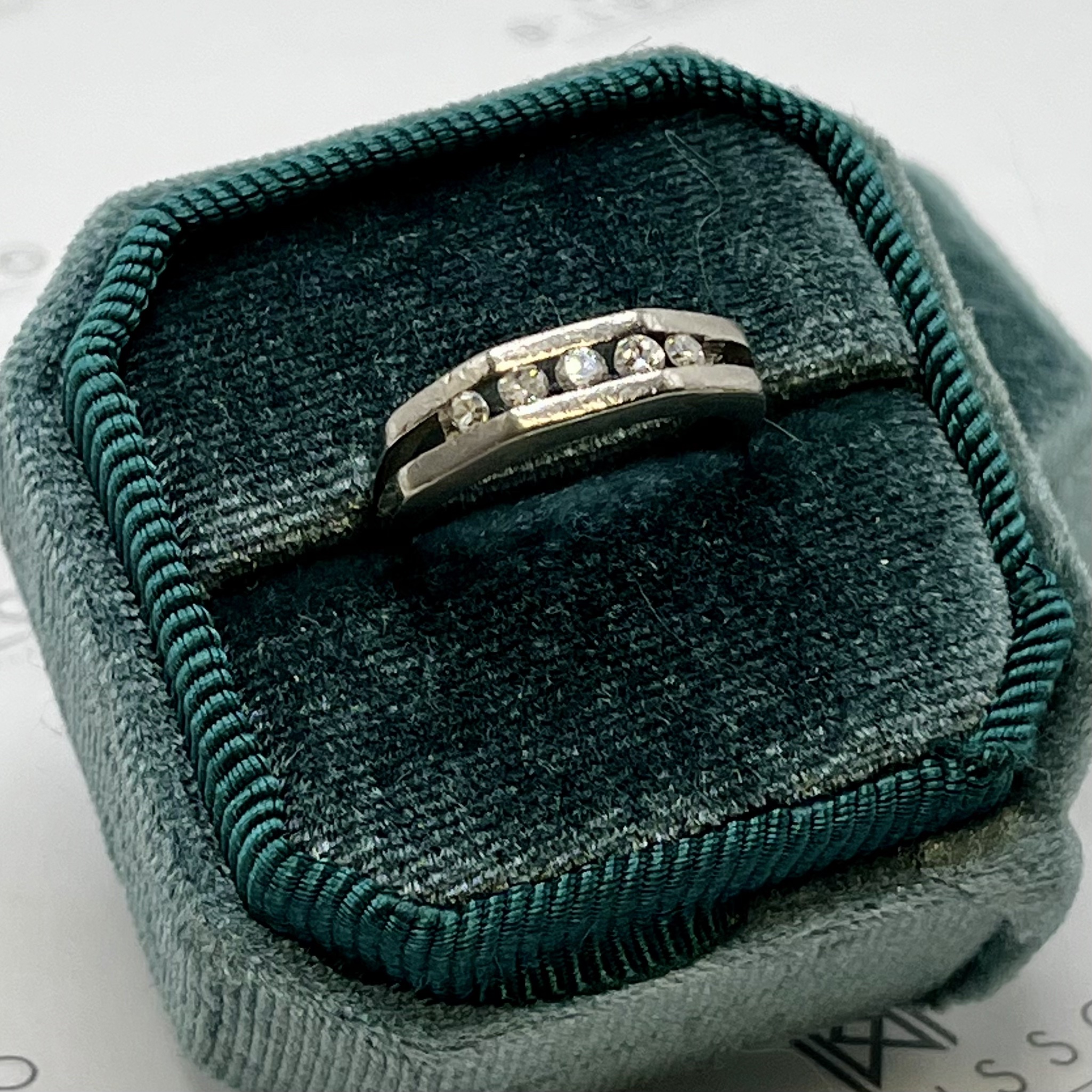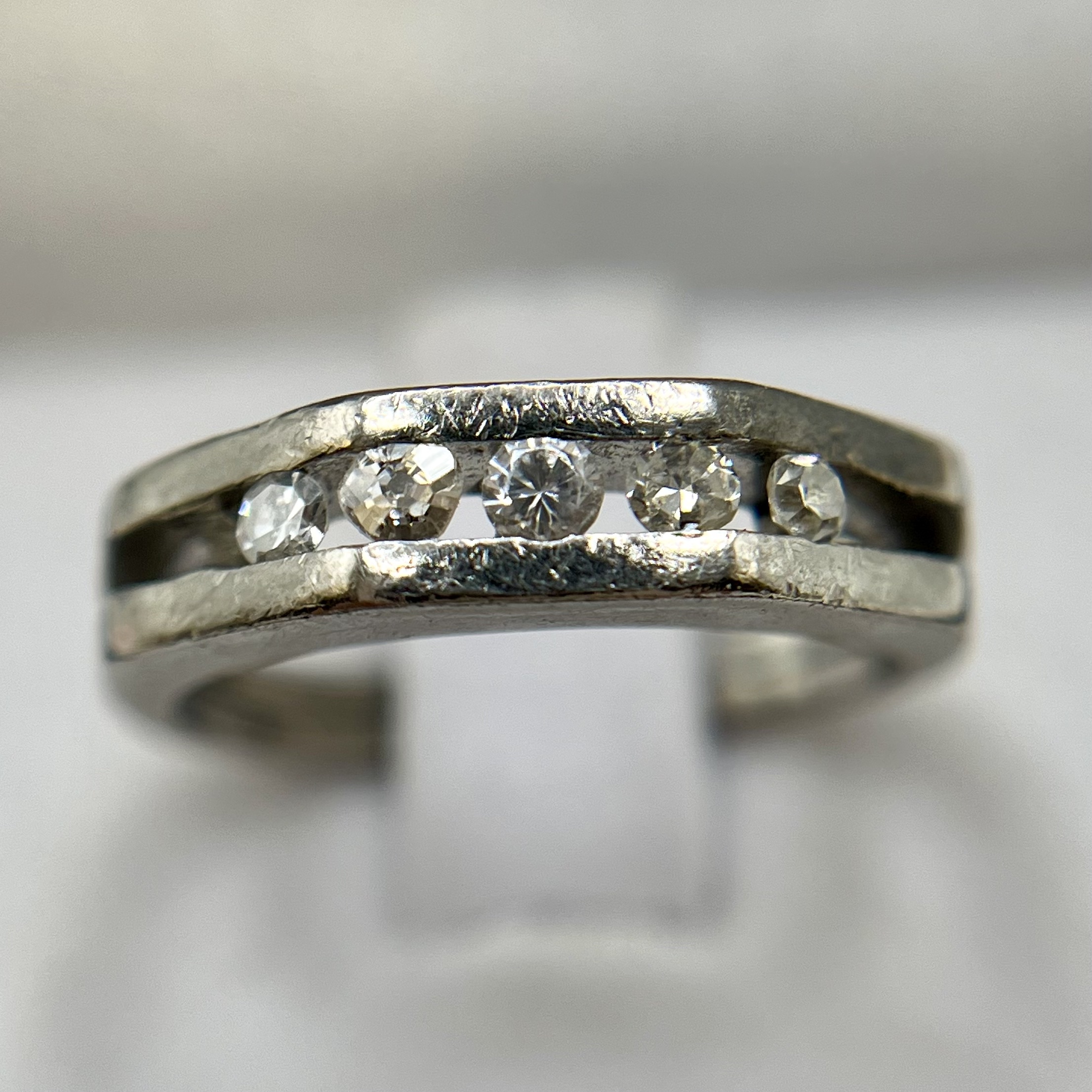 - 3 diamantes naturales que totalizan 0,15 cts. aprox., corte 8-facetas, pureza SI-Piqué, color H-I.