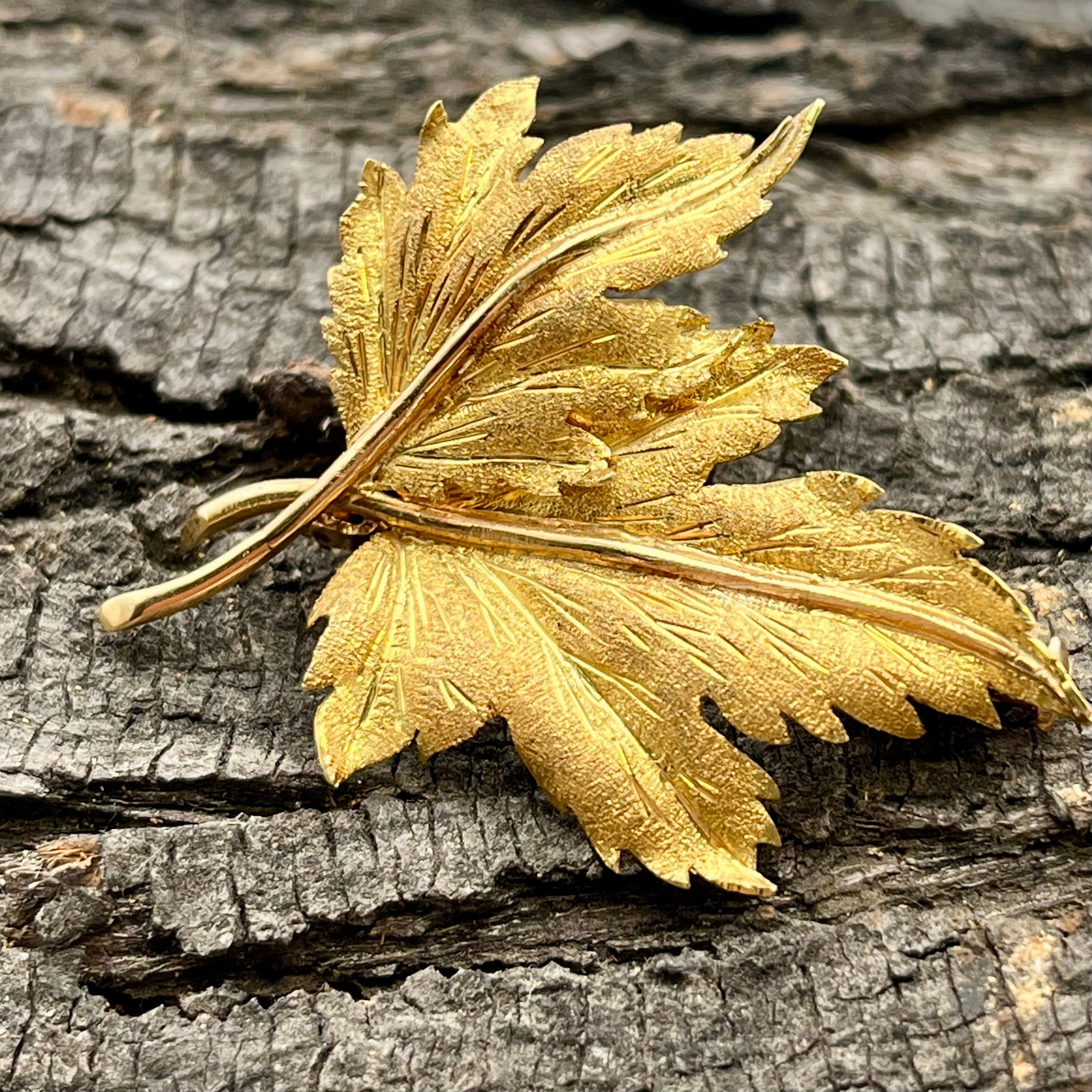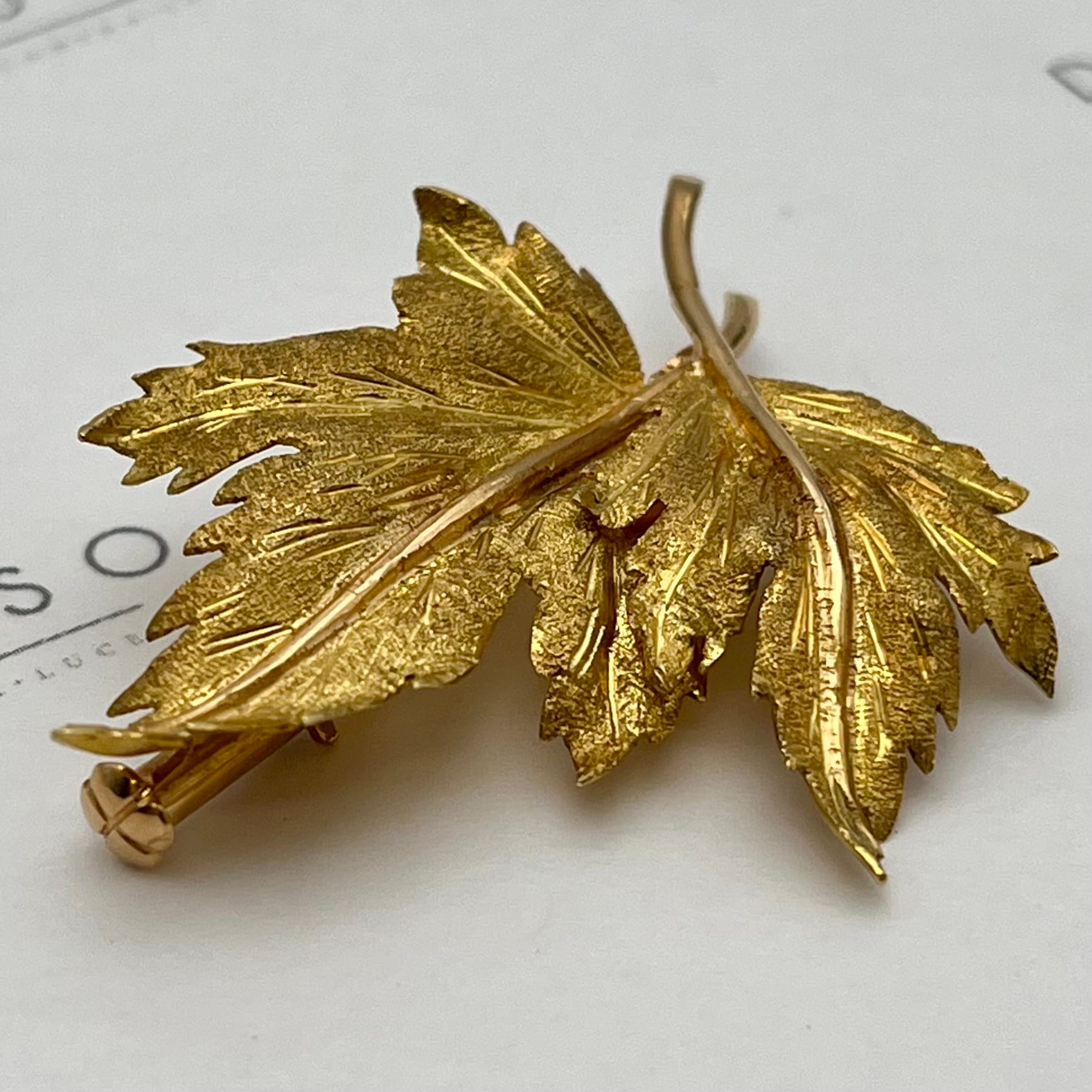 Prendedor hoja oro 18k