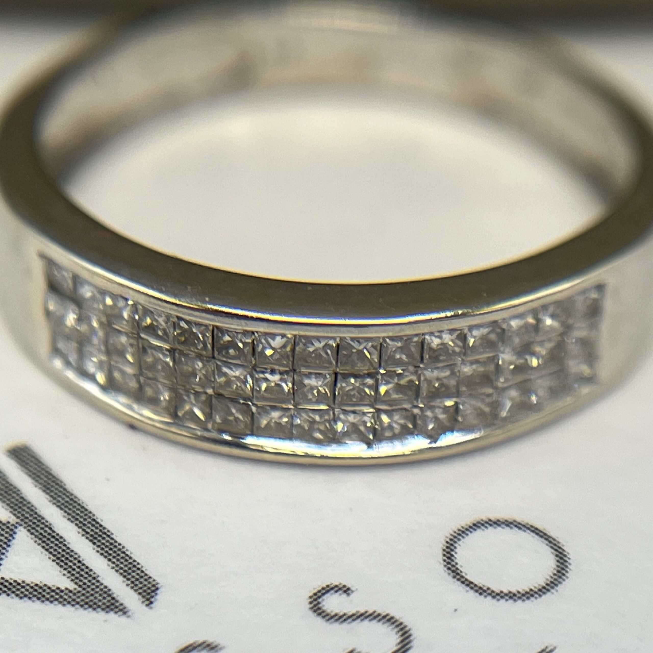 - 45 diamantes naturales que totalizan 0,90 cts. aprox., corte Princess, pureza VS-SI, color H-K.